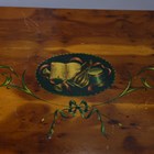 A late 20th century reproduction yew side table with Neoclassical style painted decoration, height 74cm, width 92cm, depth 50cm.