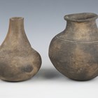 An ancient Roman provinces twin-handled vase, height 28cm, together with a similar vase and two burnished vases.