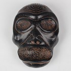 A pre-Columbian Taino style carved black stone zemi mask, Dominican Republic, possibly 1000-1500 AD, height 8.5cm, width 6cm. Provenance: from the estate of a West Sussex collector.