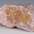 A large rose quartz mineral specimen, width 30cm, a blue agate geode and two matching sections, height 17cm, a labradorite specimen, width 20cm, and a trilobite specimen.