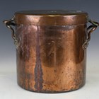 A 19th century copper cylindrical urn and lid, fitted with brass handles, height 29cm, diameter 29cm (altered).