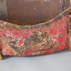 An early 20th century painted iron child's swing boat with raised handrail, length 130cm.