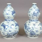 A pair of modern Chinese blue and white porcelain vases of double gourd form, height 60cm.