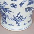 A pair of modern Chinese porcelain blue and white vases and covers, each decorated with vases of flowers and Chinese symbols, height 60cm.