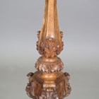 A 19th century French walnut table lamp of acanthus carved form, on a triform base, height 92cm, fitted with a shade.