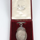 A Scottish silver oval medallion, detailed 'Sandyford Burns Club Instituted 1893', engraved with two dogs surmounted by a portrait of Robert Burns between two thistles, fitted to a brooch bar, detailed 'Director', with original fitted case.
