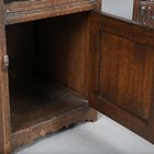 A pair of mid-20th century Jacobean Revival oak bedside cabinets with linenfold panels, height 70cm, width 40cm, depth 37cm.