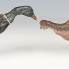 A pair of late 19th/early 20th century Austrian cold painted bronze models of mallard ducks, in the manner of Franz Xavier Bergman, both approx height 10cm, length 21cm.