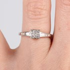 An 18ct white gold and diamond nine stone cluster ring, mounted with princess cut diamonds between baguette cut diamond set shoulders, weight 1.9g, ring size approx K.