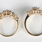 A 9ct gold and diamond cluster ring of tapered design, set with circular and baguette cut diamonds, ring size approx K, and a 9ct gold and colourless gem set cluster ring in a quatrefoil shaped design, ring size approx L, total weight 6.7g.