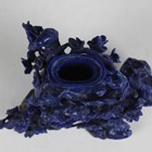 A Chinese carved rose quartz vase and cover, mid-20th century, carved in high relief with flowers and stems, with a carved and pierced naturalistic hardwood stand, total height 17.5cm, together with a carved lapis lazuli vase and cover, decorated in high relief with birds and prunus, with a carved and pierced naturalistic hardwood base, height 11.8cm (some faults).