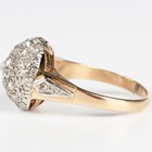 A diamond bombé style ring, mounted with rose cut diamonds between diamond set single stone shoulders and pierced sides, ring size approx R.