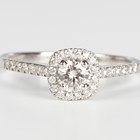 An 18ct white gold and diamond cluster ring, claw set with the principal circular cut diamond within a surround of smaller circular cut diamonds between diamond set seven stone shoulders, weight 3g, ring size approx O1/2, with an IGL Gemological Report, stating principal diamond weight 0.34ct, colour grade G and clarity grade VS2.