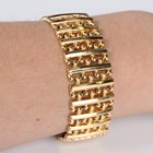 A gold wide bracelet in a bar and beaded link design, on a snap clasp, detailed '252 VI 750', weight 33.1g, length 20.5cm.