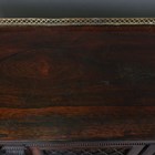 A Regency rosewood and brass inlaid breakfront side cabinet, probably by Gillows of Lancaster, the four doors inset with gilt brass trellis panels and carved pilasters, height 95cm, width 168cm, depth 44cm (faults and loss to trellis).