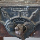 An early/mid-20th century pine work bench, fitted with a Record No. 25 vice and a Record No. 52 1/2 vice, height 85cm, length 191cm, depth 68cm.