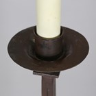 An early 20th century Arts and Crafts patinated wrought copper lamp standard, the wrythen sectional column on four downswept supports, height to light fitting 135cm.