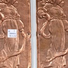 A pair of Glasgow School copper door plates, each decorated in relief with a maiden standing amongst budding stems, 27.5cm x 7.8cm.