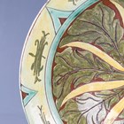 A Della Robbia pottery circular dish, circa 1900, decorated by Harry Pearce, with an incised foliate design, factory marks and artist's monogram to underside, diameter 24.6cm.