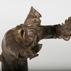 A late 19th century French brown patinated cast bronze figure of a blindfolded ex-military gentleman, a bucket and broom at his feet, height 18cm.