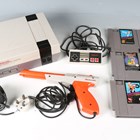 A Nintendo Entertainment System Nes Version, together with gun, single controller and six games.
