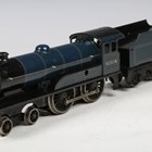 A Bassett-Lowke gauge O electric 4-4-0 locomotive 'Prince Charles' and tender in blue and black livery, within a reproduction box (some crazing and other marks).