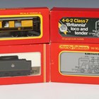 Three Hornby locomotives and tenders, comprising R.063 'Britannia', R.2086 'Earl Cairns' and R.552 'Oliver Cromwell', all boxed with instructions (boxes creased and scuffed, Oliver Cromwell box also torn), together with a Hornby Railways R.229 Pullman car 'Lucille', boxed.