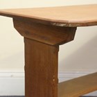 An early 20th century Arts and Crafts Cotswold School oak occasional table with overall chamfered corners, height 51cm, width 75cm, depth 37cm.