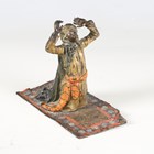 Franz Xavier Bergman - a late 19th century Austrian cold painted bronze figure, modelled as an Arabian man kneeling in prayer on a carpet, the underside with impressed amphora mark centred with a 'B', height 10.5cm.