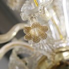 A large 20th century Murano glass twelve-light chandelier, fitted with daffodil and leaf mounts, each branch hung with a gilt speckled bellflower, height 100cm, width 120cm.