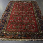 A Turkish carpet, late 20th century, the red field with overall hooked vines, within a blue palmette border, 280cm x 199cm.
