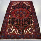 A Hamadan rug, North-west Persia, late 20th century, the charcoal field with a bold flowerhead medallion, within a blue flowerhead border, 216cm x 139cm.