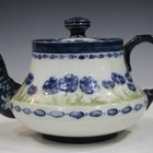 A Macintyre Moorcroft Pottery teapot and cover, early 20th century, painted with blue poppies on a white ground, brown printed factory mark to base with 'Rd No 401753', height 11.5cm.