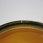 A Moorcroft yellow ground Edward VIII Coronation commemorative tobacco box and cover, dated 1937, of circular shape decorated with a crown opposing an orb and sceptre beneath an inscribed band, impressed marks to base with facsimile signature and brown painted signature too, diameter 14.5cm.