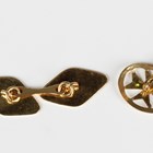 A pair of gold lozenge shaped cufflinks, detailed '750', dimensions of each front 2cm x 1.2cm, and another pair of gold cufflinks, each dished oval front pierced with a Maltese cross shaped motif, with a torpedo shaped back, detailed 'C18', total weight 11.5g.