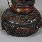 A 20th century African hardwood figural totem lamp standard, height 160cm, together with a matching table lamp, height 63cm.