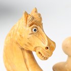 An early 20th century boxwood chess set of turned form, the carved knights with inset glass eyes, height of king 10.3cm, with a mahogany box.