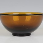 A Chinese Peking amber glass bowl, mark of Qianlong but probably later, of hemispherical form, incised four-character mark to base, height 7.4cm, diameter 15.9cm.