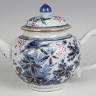 A Chinese blue and white export porcelain teapot and cover, Qianlong period, the globular body and domed cover decorated with birds and flowers, later embellished with black foliage and pink berries, unmarked, height 12.5cm.