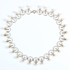 A gold and cultured pearl necklace in a circular link design, detailed '585', on a boltring clasp, weight 45.9g, length 42cm.