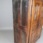 A 17th century French oak armoire, the two panelled doors carved with radiating paterae and crosshatching, height 183cm, width 134cm, depth 63cm (alterations).