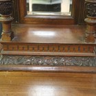 A large late Victorian walnut breakfront sideboard by James Shoolbred & Co, the mirror back with a pair of carved niches above carved cupboards and drawers, height 250cm, width 213cm, depth 69cm (some faults).