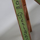 A modern wooden folding stepladder, signwritten to the sides with champagne advertising, height 81cm, depth 43cm.