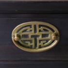 A 20th century Chinese hardwood side cabinet with scrolling upturned top, height 75cm, width 76cm, depth 38cm.