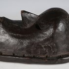 A Central African carved hardwood mask with deep, rich brown surface patina, length 27cm.