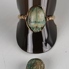 An ancient Egyptian turquoise stone scarab seal, length 1.4cm, together with a gold ring, set with a carved stone scarab.