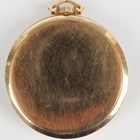 A Lacloche gold cased keyless wind open-faced lady's dress watch, the jewelled lever movement detailed 'Highest quality Swiss made 180129', the signed silvered dial with gilt Arabic numerals, gilt hands and subsidiary seconds, the triangular suspension bow detailed '18', the snap-off case back unmarked, weight 36.7g, case diameter 4.2cm, with an associated case.