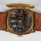 An 18ct gold cushion cased lady's wristwatch, the jewelled movement detailed 'Swiss Made', the unsigned silvered dial with black Arabic numerals and subsidiary seconds, import mark Glasgow 1927, case width 2.2cm, on a leather strap, together with two Mu Du gold cased ladies' wristwatches, the case backs detailed '18K 0.750', case diameters 1.4cm, one with an expanding gilt metal bracelet.