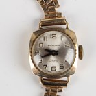 An Accurist 9ct gold circular cased lady's wristwatch, Birmingham 1963, case diameter 1.8cm, on a gilt metal expanding bracelet, together with an Excalibur 9ct gold cased lady's wristwatch on a gilt metal bracelet and two further ladies' watches.