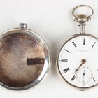A Russian gun metal cased keyless wind open-faced gentleman's pocket watch with unsigned jewelled movement, the signed black dial with gilt Roman numerals, case diameter 5.6cm, with original case, together with a silver pair cased keywind open-faced pocket watch, the gilt movement signed 'Stewart Dawson & Co Liverpool 80450', London 1879, outer case diameter 5.2cm, a silver cased open-faced pocket watch, the gilt three-quarter plate lever movement detailed 'French Royal Exchange No7690', London 1836, case diameter 4.6cm, a silver postage stamps case, designed as an envelope, Birmingham 1902, eight watch keys and various watch movements, glasses and parts.